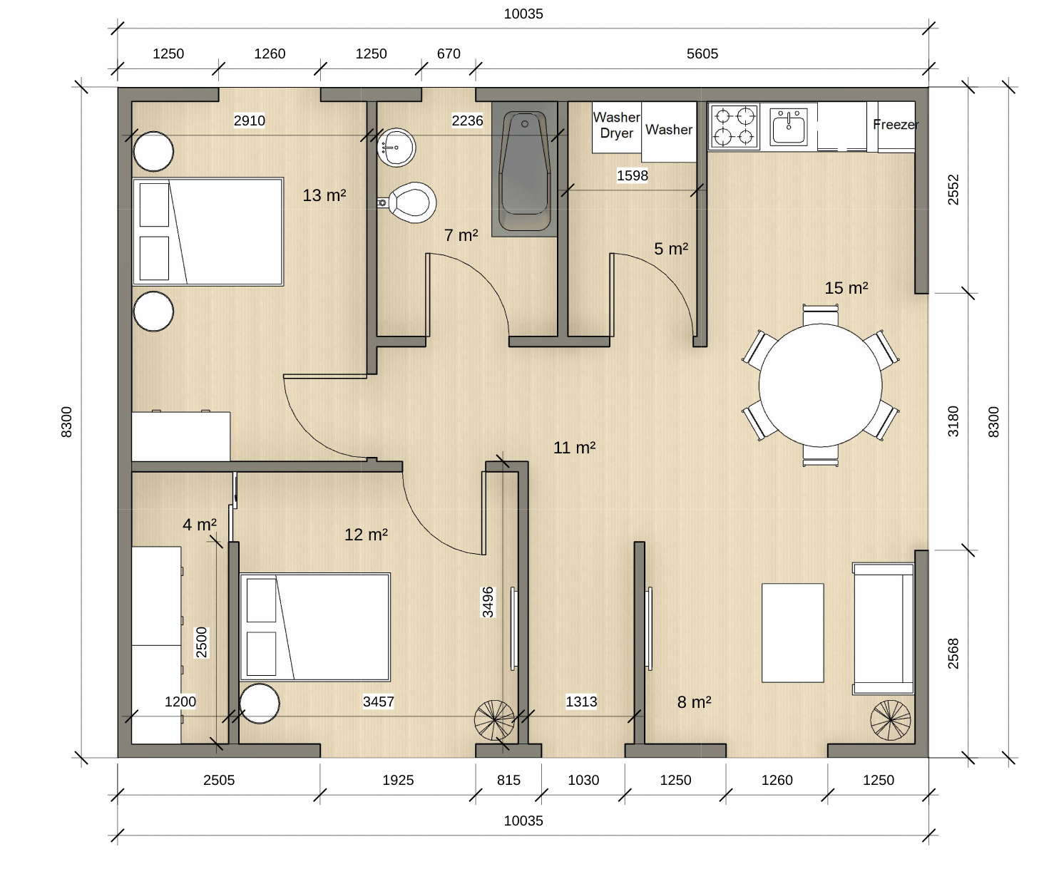 - Optimized for Families: With two well-appointed bedrooms, the “Box 80 m²” is the ideal choice for couples or small families.